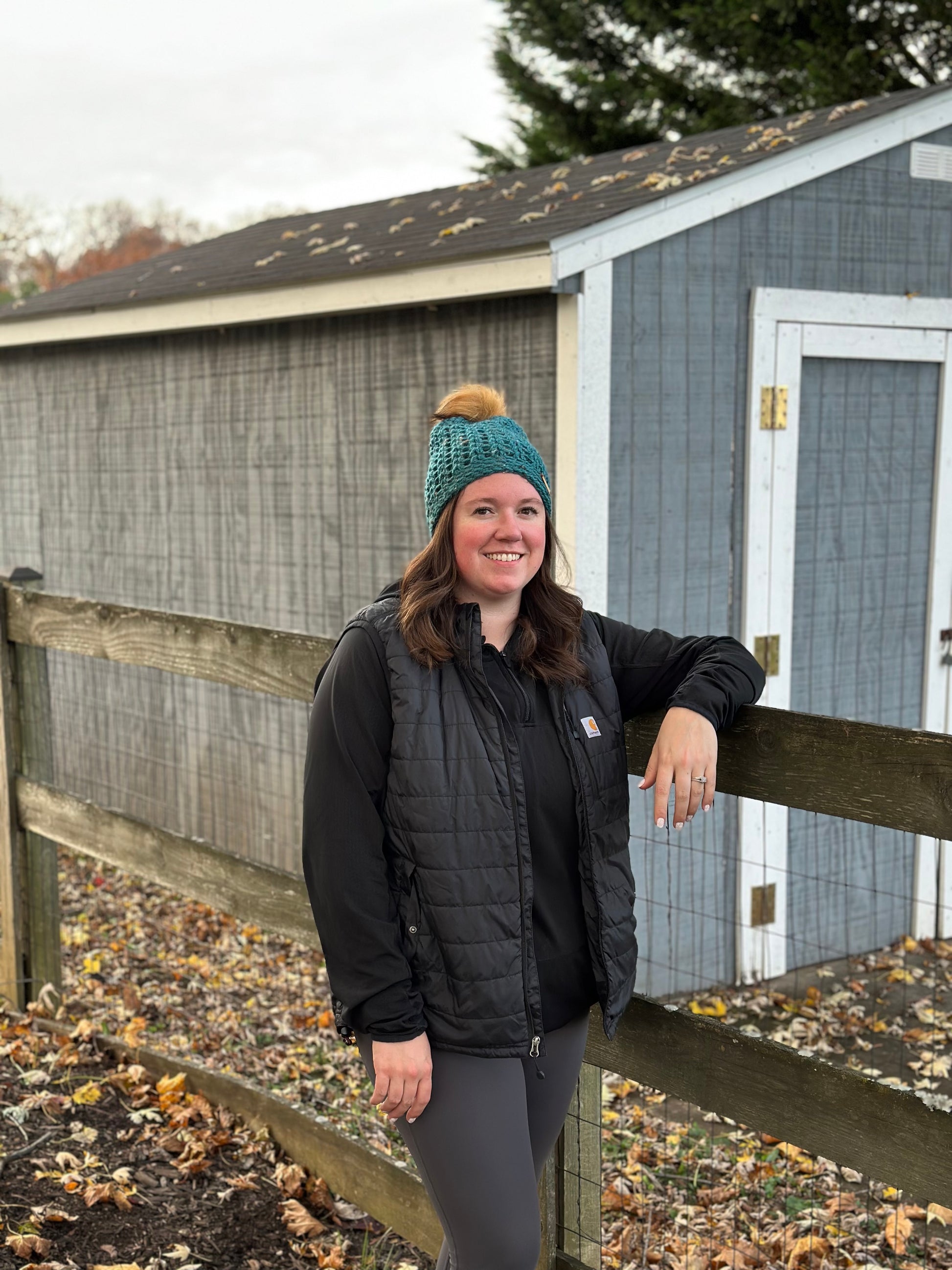 HANDMADE with a chunky acrylic yarn blend& topped with a removable faux fur pom.