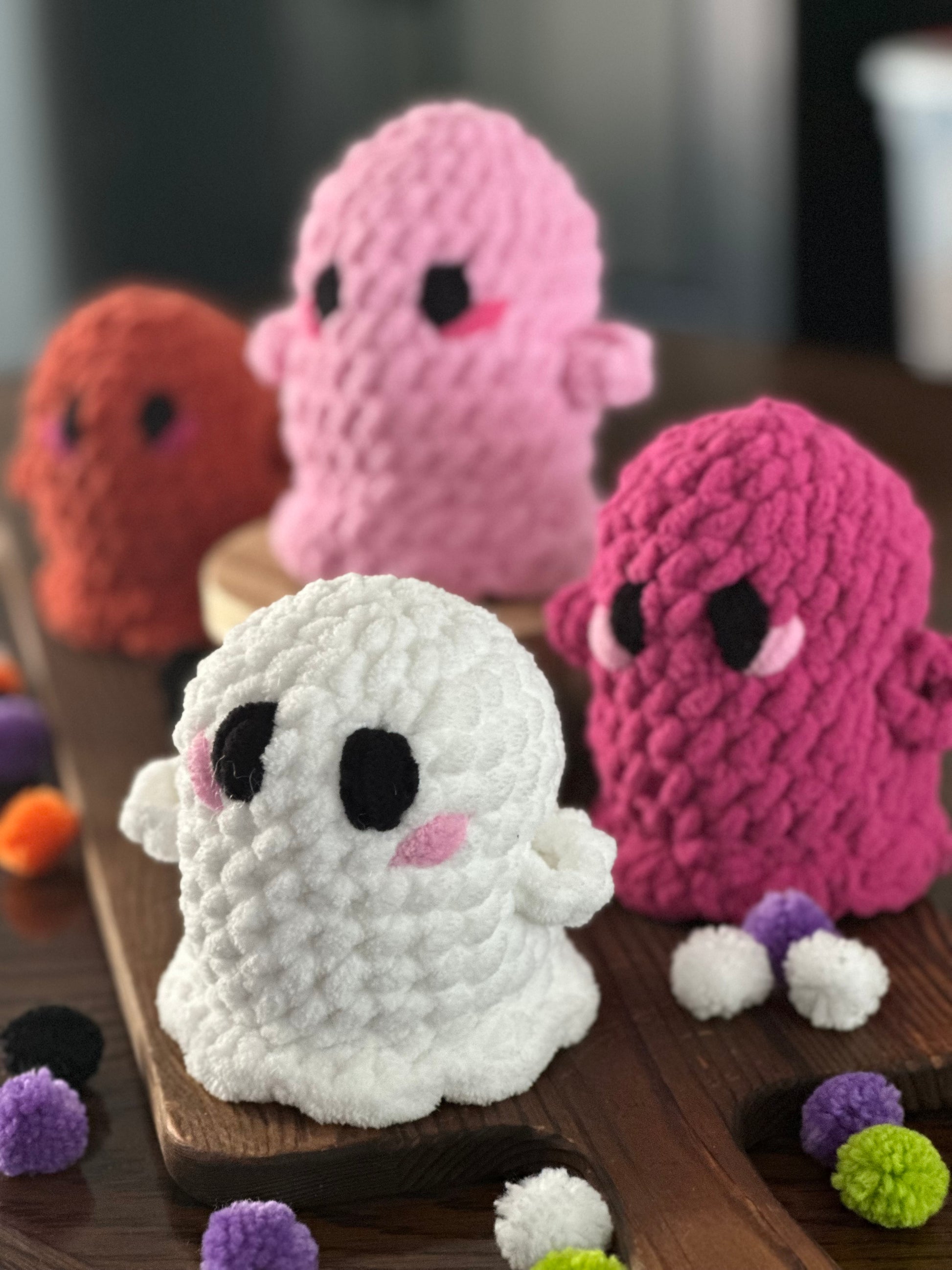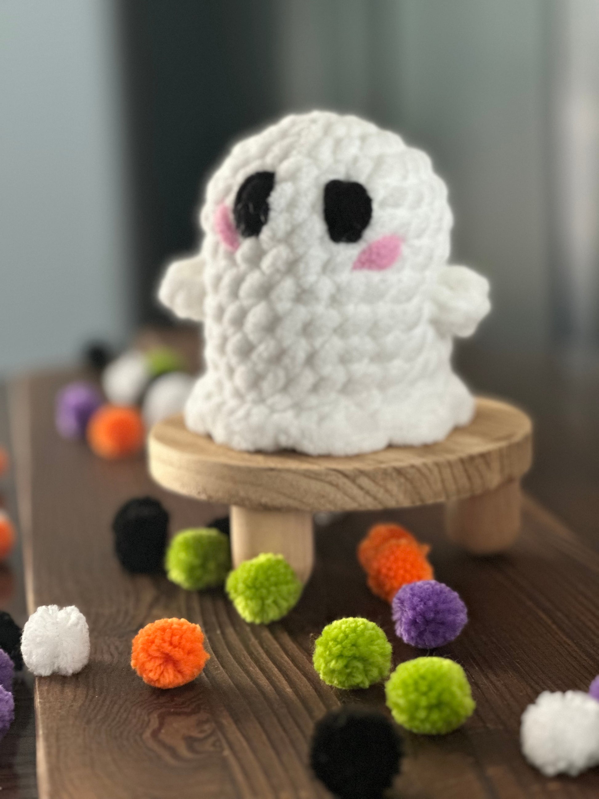 Each ghost features simple face with large "ghostly" eyes and cheek highlights, ideal for adding a touch of whimsy to your Fall and Halloween décor. Whether you're decorating a shelf, gifting a friend, or surprising a little one, this charming spirit is sure to bring smiles—not scares!